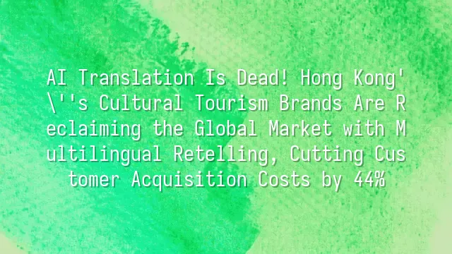 AI Translation Is Dead! Hong Kong's Cultural Tourism Brands Are Reclaiming the Global Market with Multilingual Retelling, Cutting Customer Acquisition Costs by 44%