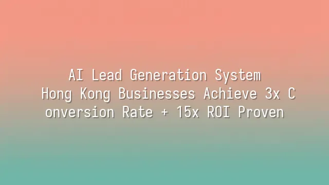 AI Lead Generation System: Hong Kong Businesses Achieve 3x Conversion Rate + 15x ROI Proven