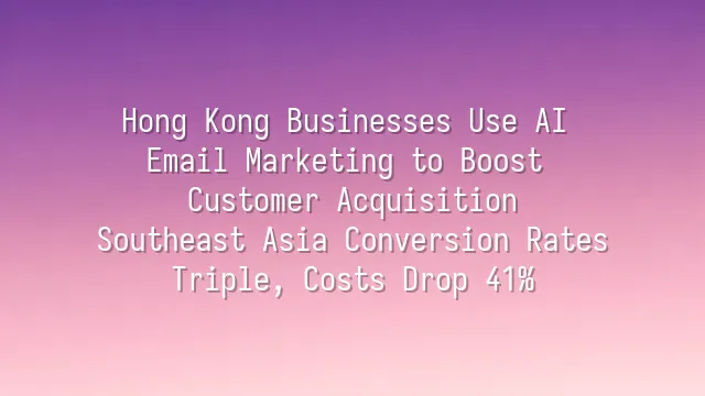 Hong Kong Businesses Use AI Email Marketing to Boost Customer Acquisition: Southeast Asia Conversion Rates Triple, Costs Drop 41%