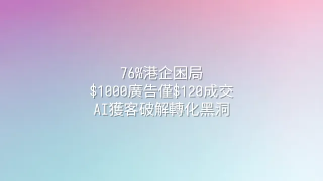 每投入$1,000廣告費,就有$880流入轉化黑洞——根據香港中小企發展中心2025年報告,76%企業正深陷「流量高、成交低」困境,平均僅12%潛在客戶最終成交。問題不在投放,而在系統性斷裂。