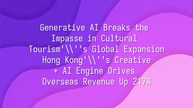 Generative AI Breaks the Impasse in Cultural Tourism's Global Expansion: Hong Kong's Creative + AI Engine Drives Overseas Revenue Up 217%