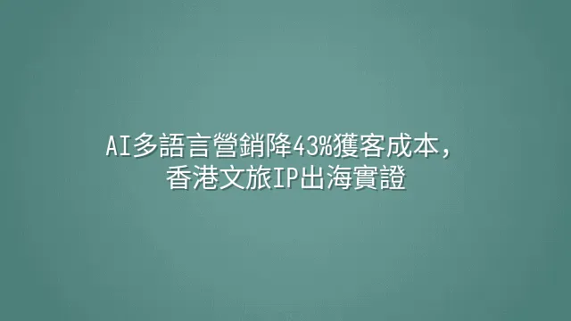 AI多語言營銷降43%獲客成本,香港文旅IP出海實證