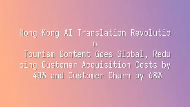 Hong Kong AI Translation Revolution: Tourism Content Goes Global, Reducing Customer Acquisition Costs by 40% and Customer Churn by 68%