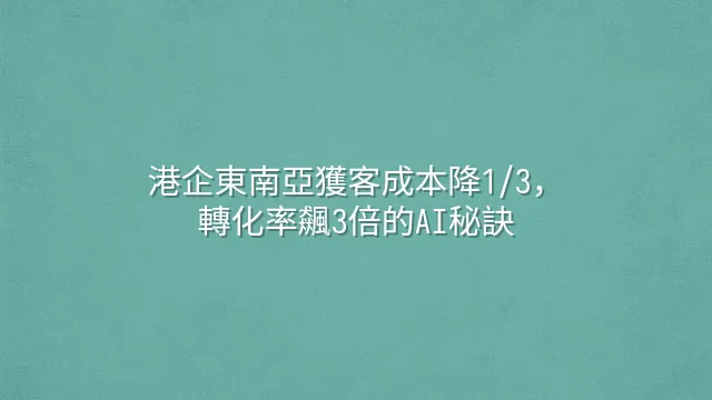 港企東南亞獲客成本降1/3,轉化率飆3倍的AI秘訣