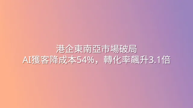 港企東南亞市場破局:AI獲客降成本54%,轉化率飆升3.1倍