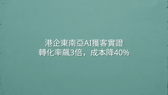 港企東南亞AI獲客實證:轉化率飆3倍,成本降40%