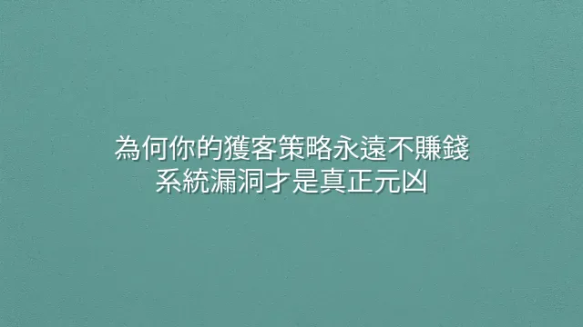 為何你的獲客策略永遠不賺錢?系統漏洞才是真正元凶